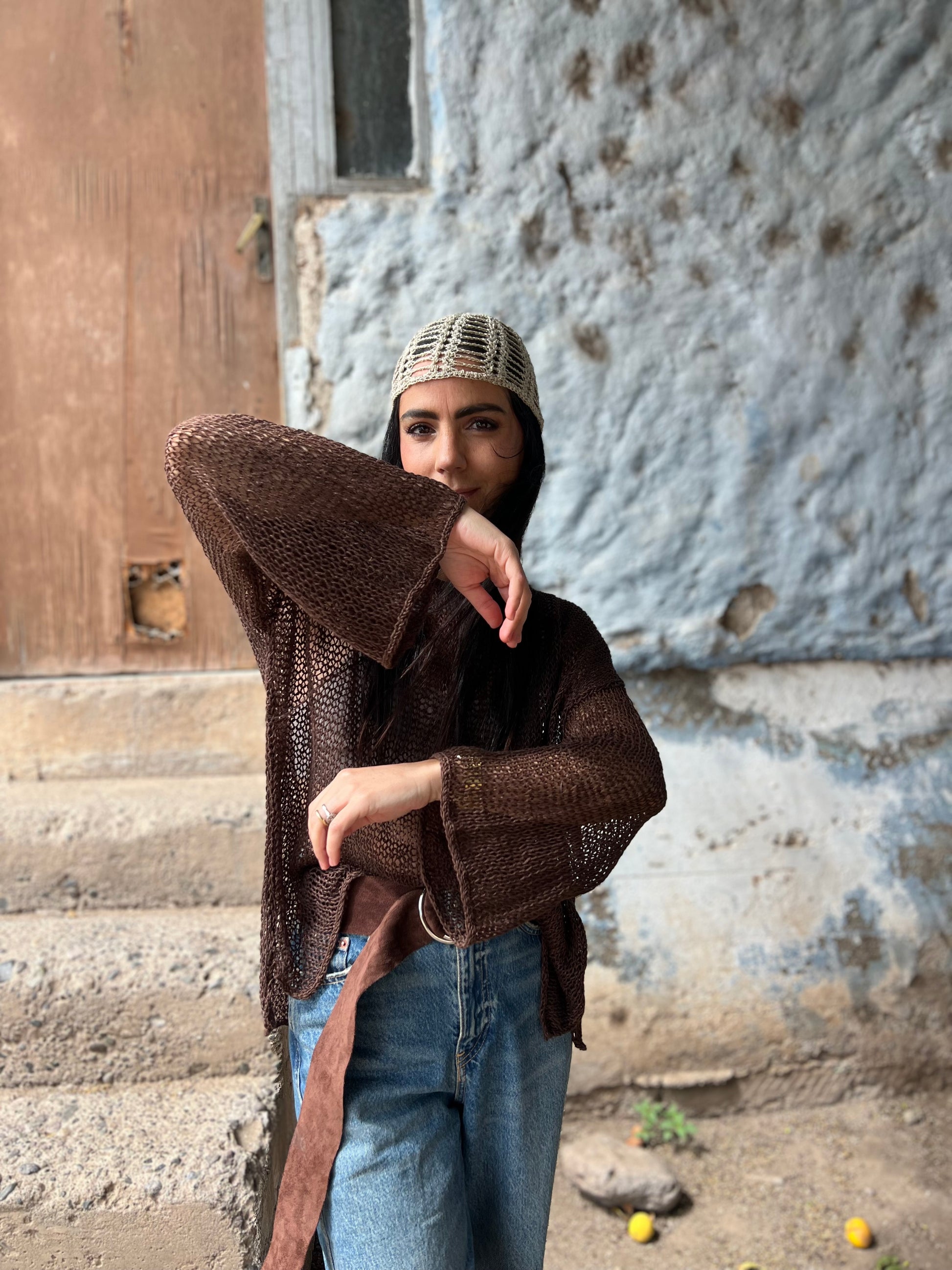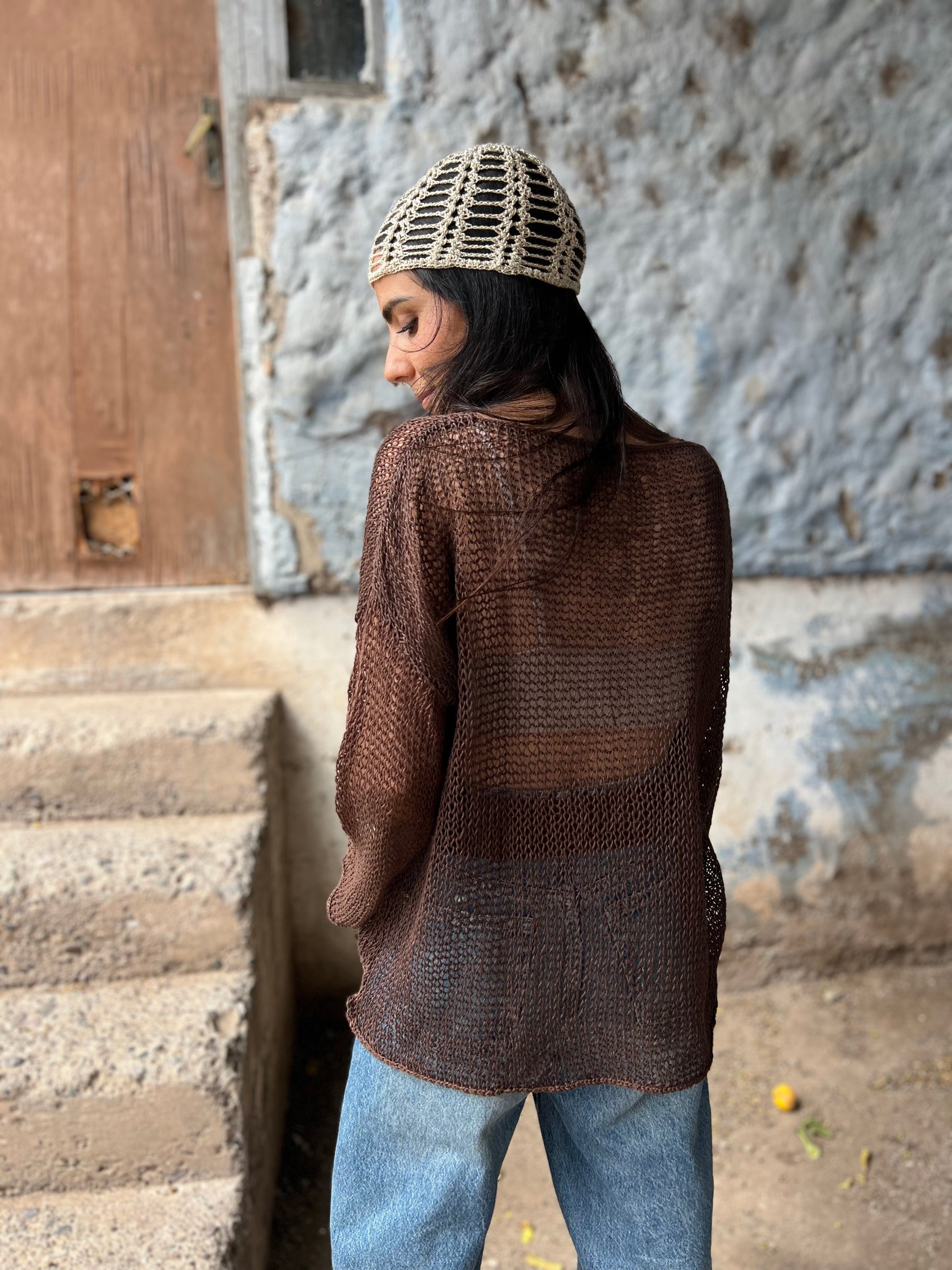 Chaleco Bugambilia Café - TEJIDO A MANO 100% LINO