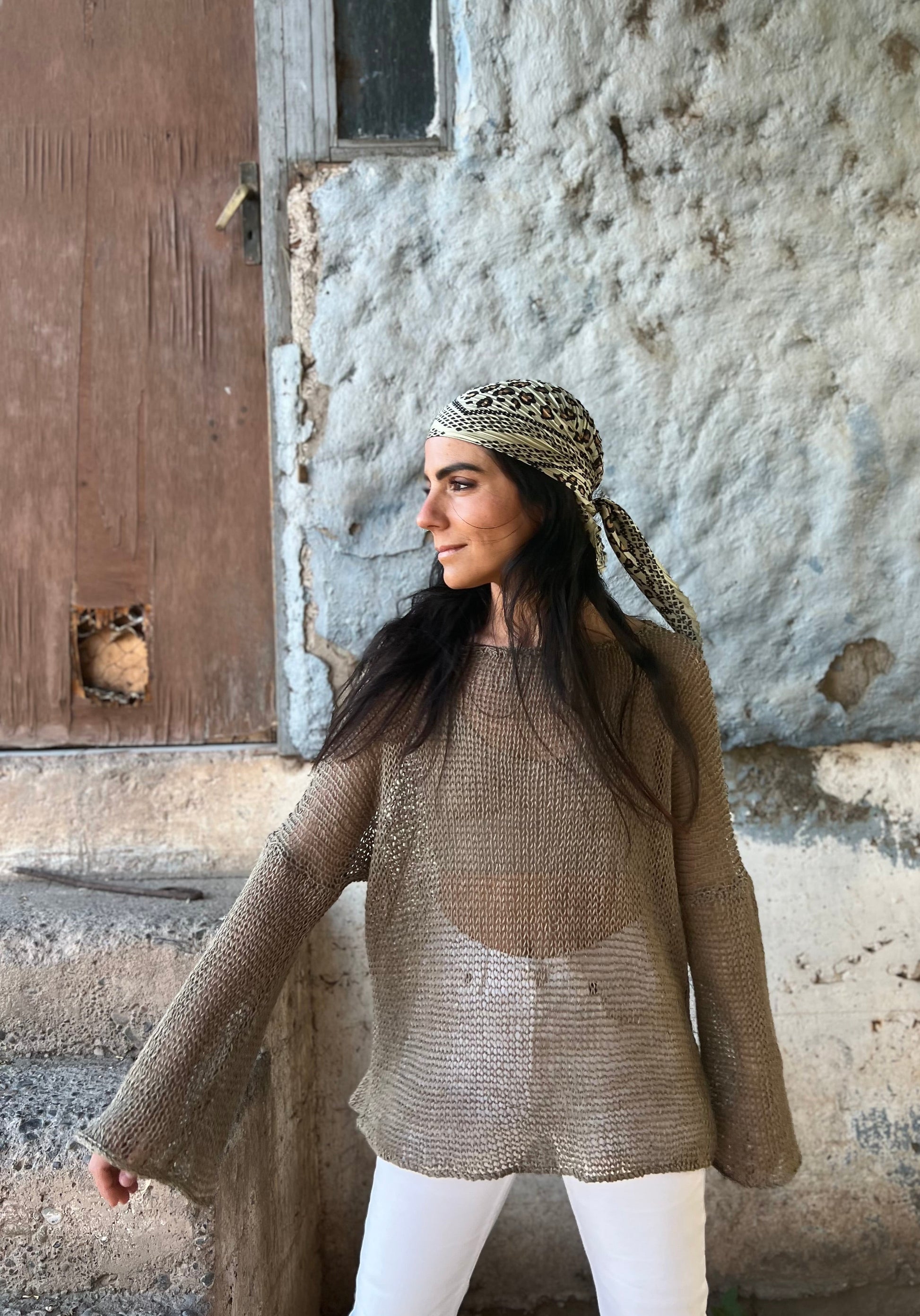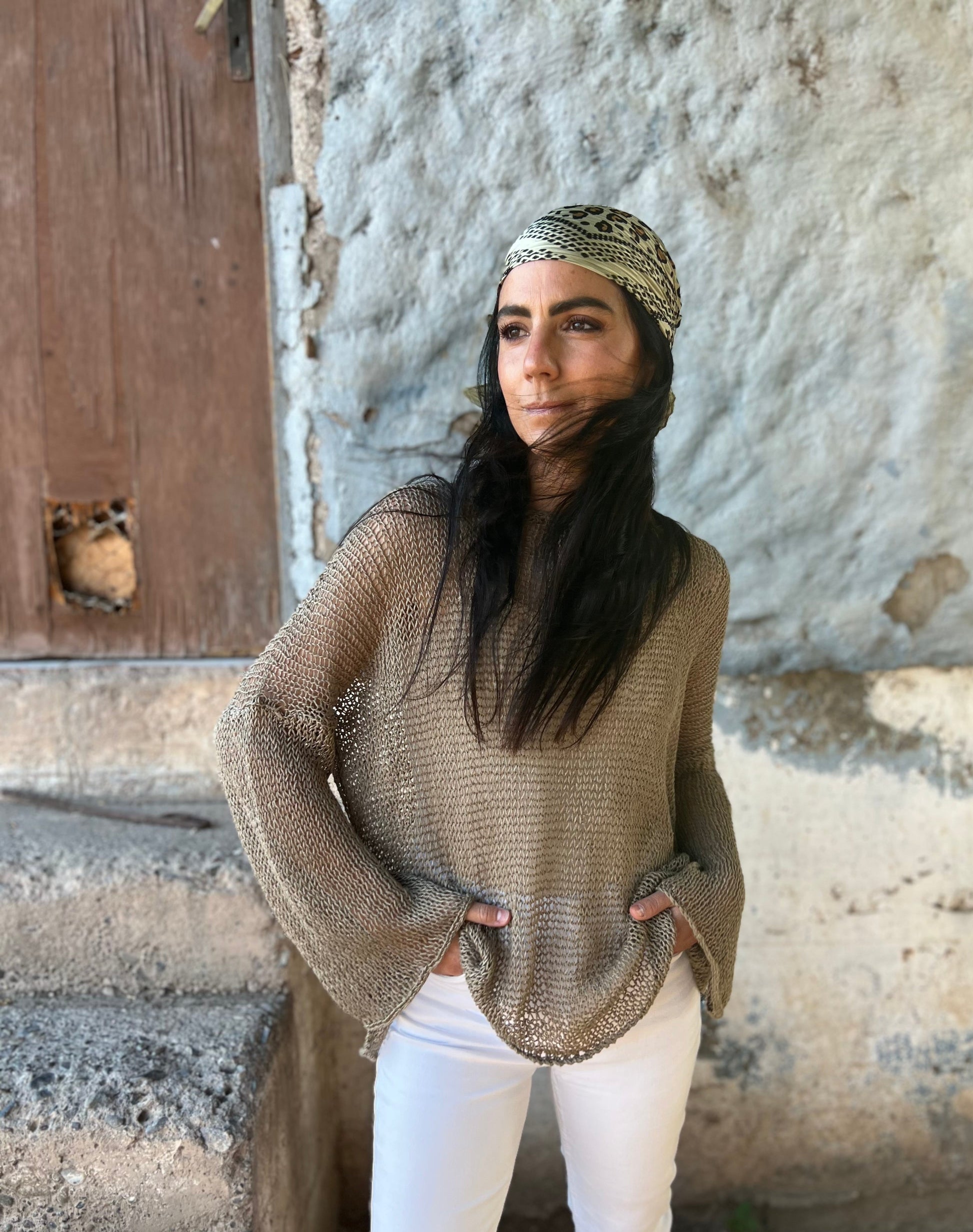Chaleco Bugambilia Verde Musgo - TEJIDO A MANO 100% LINO